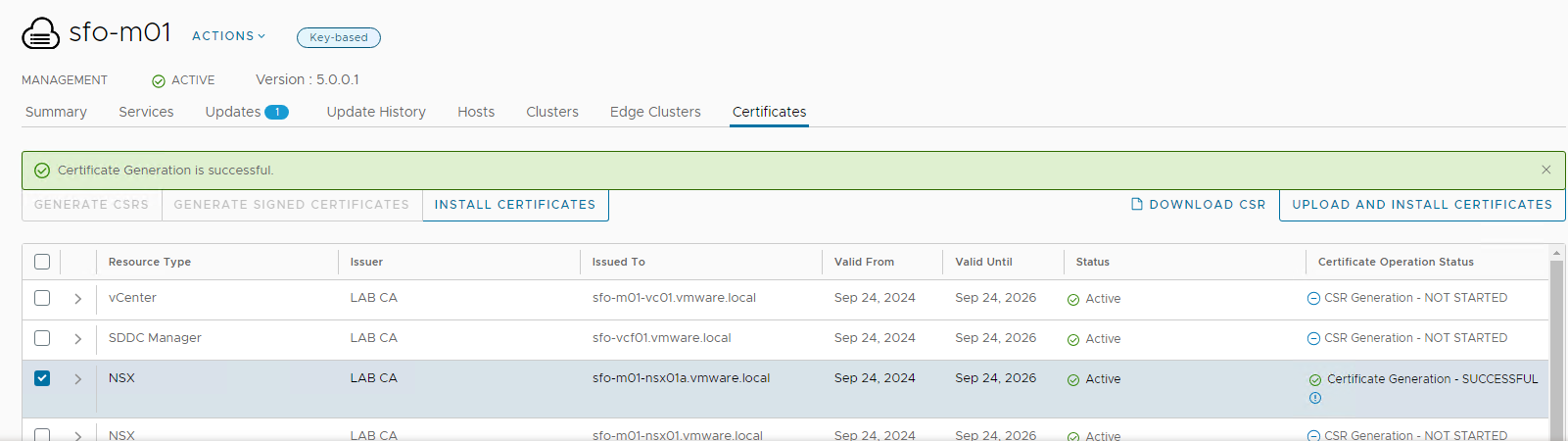 VMware Cloud Foundation (VCF) enables us to manage certificates for different components, including integrating a certificate authority, generating CSRs and generating signed certificates and installing signed certificates. In this post, I want to show how I managed certificates for the following components: